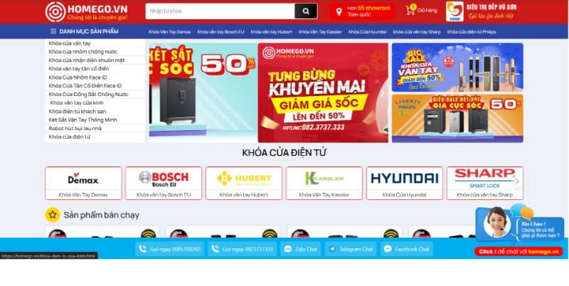 Cái tên cuối cùng trong danh sách là khóa cửa Homego, nhà phân phối chính hãng các thương hiệu khóa thông minh nhập khẩu, đặc biệt là các dòng khóa Demax và Kassler theo tiêu chuẩn công nghệ Đức.